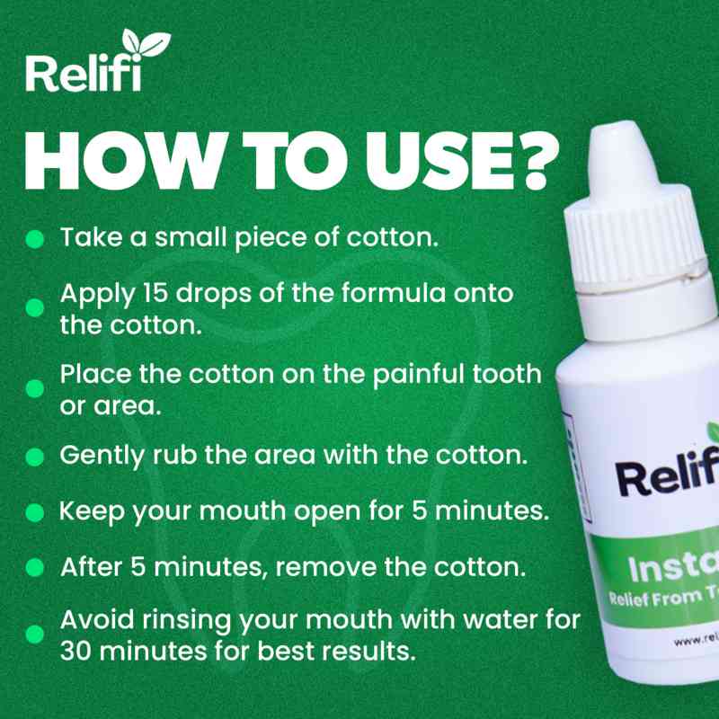 No complicated steps here! Just grab a small piece of cotton, apply Relifi, and let it work its magic. It’s quick, easy, and hassle-free—exactly what you need when you’re in pain.